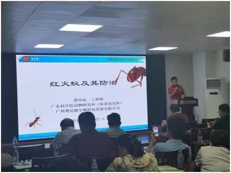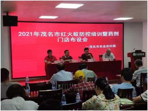 为了更好地提高群众对红火蚁的防范意识和防治技术、宣传科普红火蚁预防和防治知识。5月11日广东省茂名市召开全市红火蚁防控现场会,茂名市农业农村局、茂名市农业科技推广中心、茂名市植保站、各区、县级市农业农村部门、化州市镇(街道)农办负责人,红火蚁药剂零售门店负责人等参加了会议。